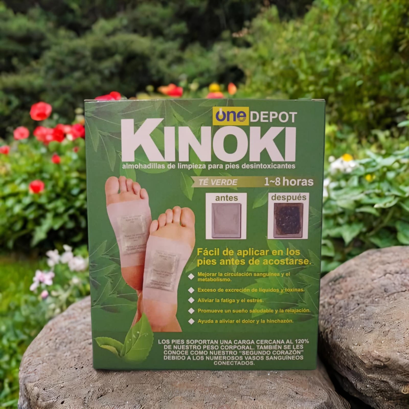 Pack DE 10 Parches Desintoxicante KinokiDescripción del ProductoLas Almohadillas Desintoxicantes Para Pies son una solución natural para eliminar toxinas mientras duermes. Estas almohadillas están formuladas con ingredientes como el vinagre de bambú y extracto de té verde, reconocidos en la medicina tradicional por su capacidad para absorber impurezas y revitalizar el cuerpo. Simplemente coloca una almohadilla en la planta de cada pie antes de acostarte, y permite que absorban las toxinas acumuladas, ayudándote a despertar con una sensación de limpieza y energía renovada.Beneficios y CaracterísticasDesintoxicación Profunda: El vinagre de bambú ayuda a eliminar toxinas a través de los puntos de acupresión en los pies.Antioxidantes Del Té Verde: Proporciona protección antioxidante que contribuye a combatir el estrés oxidativo.Fácil De Usar: Coloca las almohadillas en los pies antes de dormir y despierta sintiéndote revitalizado.Ideal Para: Personas que buscan una forma natural de desintoxicar el cuerpo, mejorar la vitalidad y reducir síntomas como fatiga, malestar digestivo y exceso de toxinas.